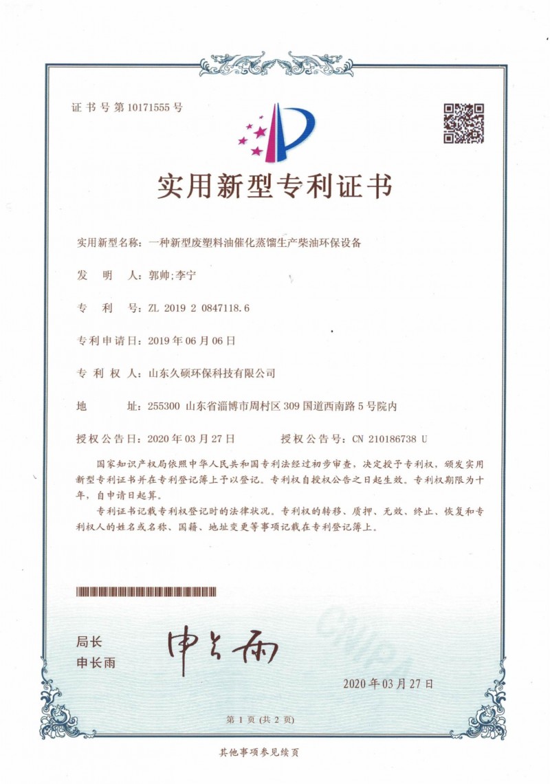 實(shí)用新型專利證書