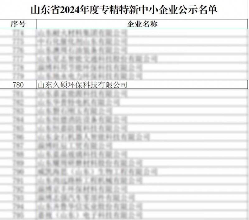 山東久碩環(huán)保科技有限公司,通過審核成為專精特新中小企業(yè)!
